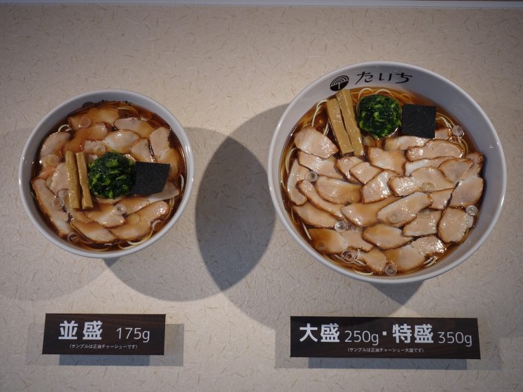 「正油ラーメン」のスープを口に運ぶと、生姜の爽やかな風味が口に広がり、それを追いかけるように香味野菜と豚骨を使ったスープの旨みを感じる。麺はもともと製麺業からスタートした、地元の越後製菓が製造した中太のちぢれ麺、これがスープによく絡む。そして特徴的なのが大盛・特盛に使うどんぶりだ。直径30センチの特注のどんぶりはインパクト抜群、初めて注文されたお客様は驚くのもうなずける。佐藤さんの、たっぷりのスープの中で麺を泳がせながら食べていただきたいという思いから生まれたどんぶりだ。